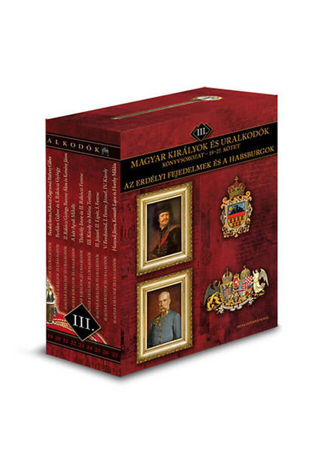 19-27 of Duna International Könyvkiadó's highly successful 26-part book series. we are now presenting the volume to the Readers in a gift box. The volumes of the third gift box present the lives of Transylvanian princes and Habsburg rulers, their historically significant deeds, and the social customs of the time in nine richly illustrated volumes. The volumes: 19. István Bocskai, Zsigmond Rákóczi, Gábor Báthory • 20. Gábor Bethlen and György I. Rákóczi • 21. II. György Rákóczi, Ákos Barcsay, János Kemény • 22. The two Apafi Mihály • 23. Imre Thököly and II. Ferenc Rákóczi • 24. III. Károly and Mária Theresia • 25. II. Joseph, II. Lipót, Ferenc I • 26. Ferdinand V, Ferenc József I, IV. Károly • 27. Hunyadi, Kossuth, Horthy